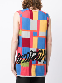 geometric-print sleeveless top multicolour wool blend geometric-pattern print abstract pattern print crew neck sleeveless straight hem Imported Composition Wool 67%, Acrylic 33% SIZE & FIT Model measurements Height 6 ft 2 in(1.87 m) Bust/Chest 36.22 in(92 cm) Hips 37.79 in(96 cm) Waist 28.34 in(72 cm) FittingInformation Designed to be unstructured, offering a loose fit throughout Made with a midweight knit, this piece offers some stretch This piece fits true to size – take your usual size Washing instructions Dry Clean Only
