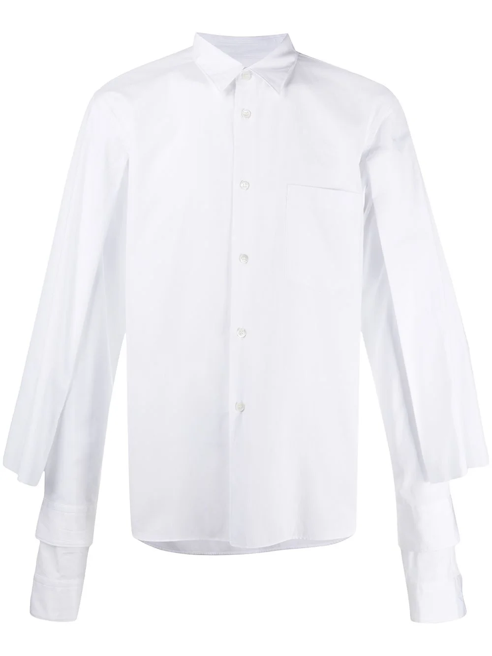 long-sleeve cotton shirt white cotton classic collar front button fastening front pouch pocket curved hem Imported Composition Cotton 100% SIZE & FIT Model measurements Height 6 ft 2 in(1.89 m) Bust/Chest 37.79 in(96 cm) Hips 37 in(94 cm) Waist 29.92 in(76 cm) FittingInformation This piece fits true to size. We recommend you get your regular size Cut for a loose fit Made with a mid-weight non-stretch fabric Washing instructions Hand Wash