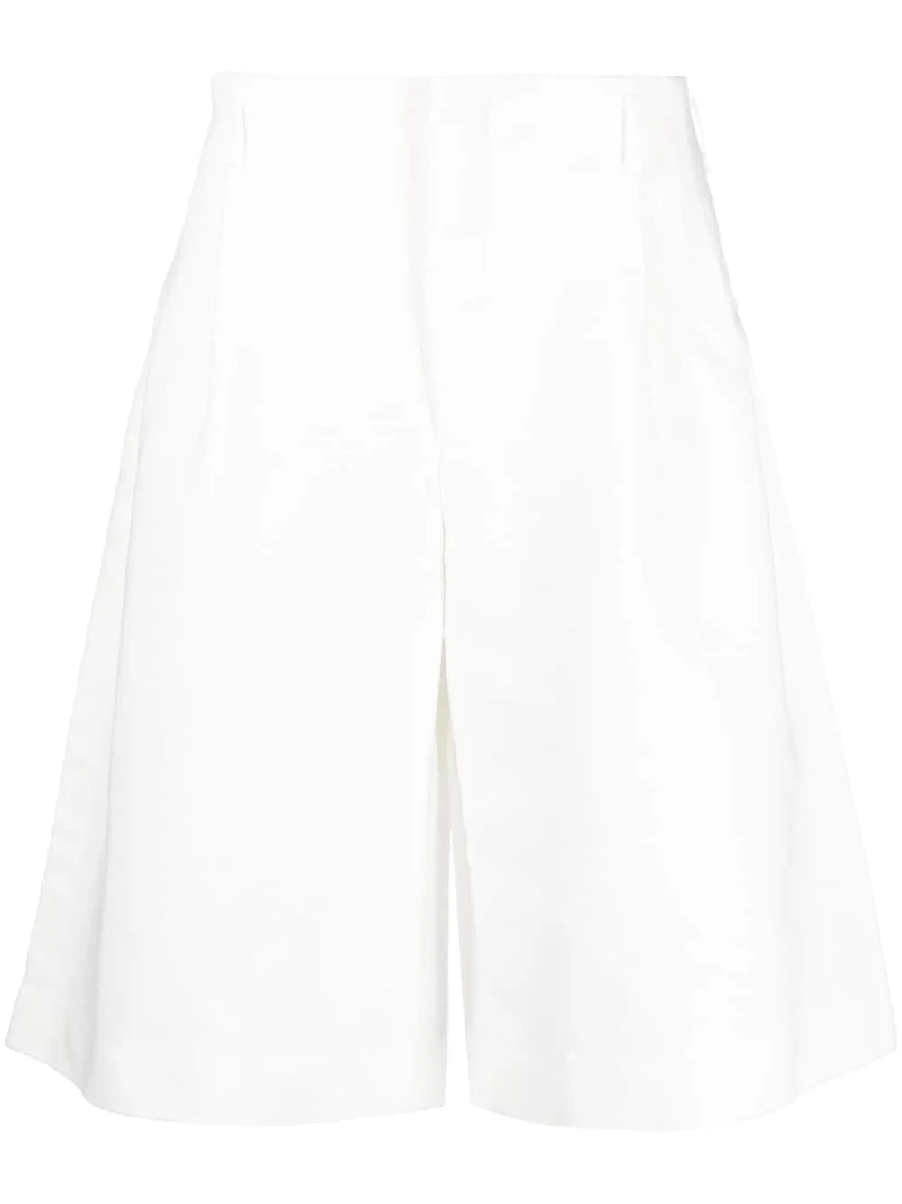 wide-leg tailored shorts Highlights - Optical white - Pleat detailing - Belt loops - Concealed front fastening - Wide leg - Two side inset pockets - Rear flap pocket - Straight hem - Knee-length Imported Composition Polyester 100% SIZE & FIT Model measurements Height 6 ft 2 in(1.87 m) Bust/Chest 36.41 in(92.5 cm) Hips 37 in(94 cm) Waist 29.52 in(75 cm) FittingInformation Designed with a wide leg, offering a loose and roomy fit Made from a midweight non-stretch fabric This piece fits true to size – take your usual size