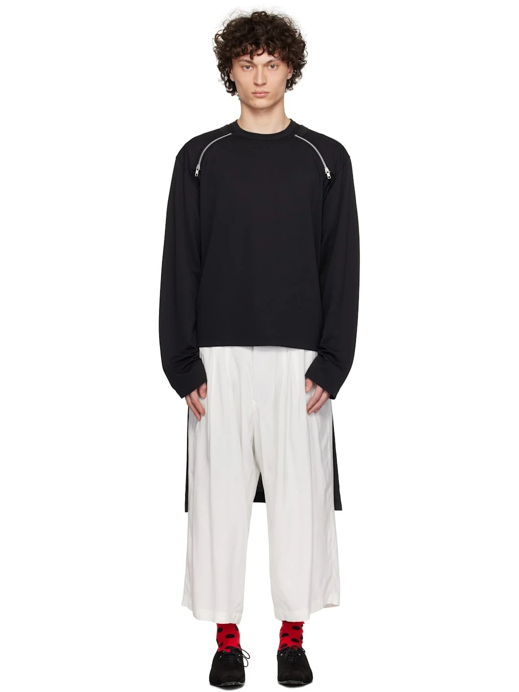Polyester pique T-shirt. · Rib-knit crewneck · Droptail hem · Raglan sleeves · Detachable cardigan-style overlay with zip fastening Supplier color: Black 100% polyester. Made in Japan 251347M213006