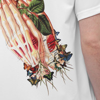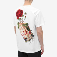 This tee from Comme des Garçons Homme Plus promises to turn heads thanks to its hand and rose print on the back. Styled in white to a clean look, it’s crafted from polyester and promises all-day comfort. - 100% Polyester - Crewneck - Made in Japan