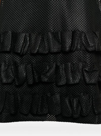 ruffled mesh tank top Highlights - Black - Mesh design - Round neck - Sleeveless - Ruffled straight hem Imported Composition Polyester 100% SIZE & FIT Model measurements Height 6 ft 1 in(1.85 m) Bust/Chest 38.58 in(98 cm) Hips 37 in(94 cm) Waist 30.31 in(77 cm) Washing instructions Hand Wash
