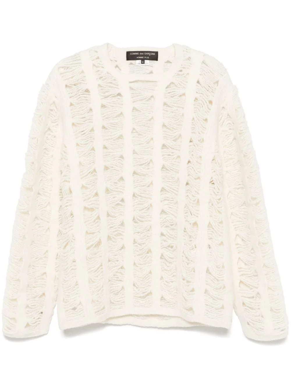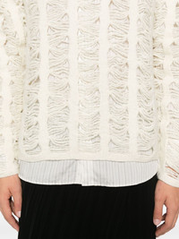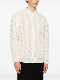 ripped-detail sweater Highlights - Off-white - Wool - Open knit - Crew neck - Ripped detailing - Long sleeves - Straight hem Imported Composition Wool 100% SIZE & FIT Model measurements Height 6 ft 2 in(1.87 m) Bust/Chest 38.97 in(99 cm) Hips 37.99 in(96.5 cm) Waist 29.52 in(75 cm) FittingInformation Designed for a relaxed fit, this piece allows for comfort and movement when worn Made with a midweight knit, this piece offers some stretch