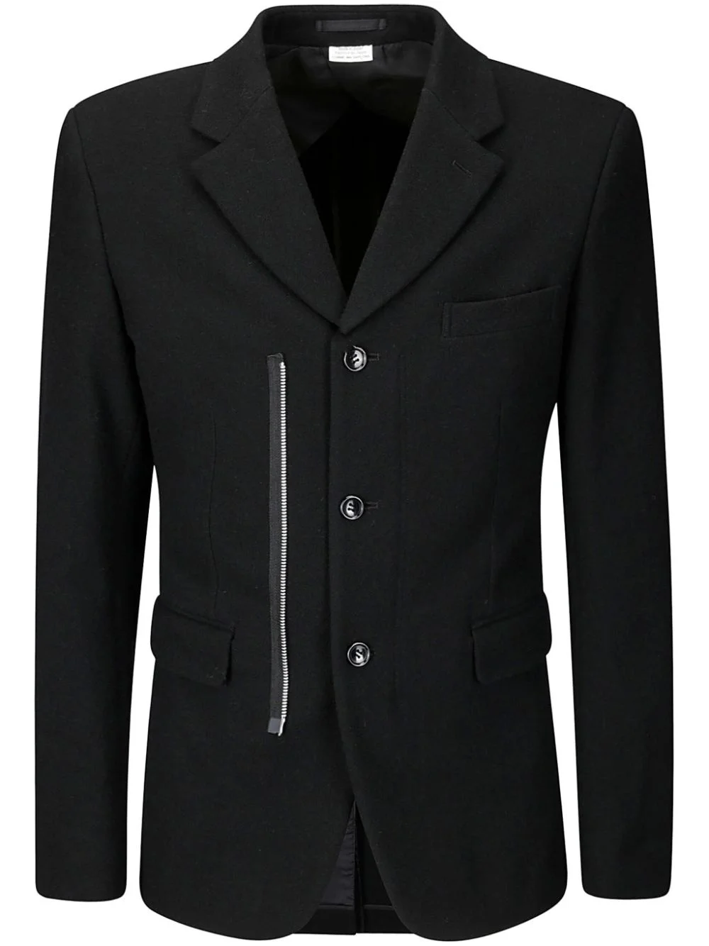 single-breasted blazer Highlights - Black - Wool blend - Front button fastening - Decorative zip detailing - Notched lapels - Chest welt pocket - Two front flap pockets - Long sleeves - Buttoned-cuff sleeves - Curved hem Imported Composition Wool 80%, Nylon 18%, Polyurethane 2%