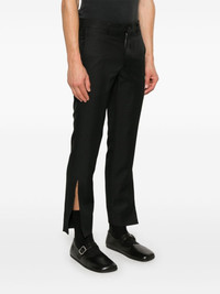 tapered trousers Highlights - Black - Interlock twill weave - Concealed fly and button fastening - Belt loops - Mid-rise - Two side slit pockets - Two rear welt pockets - Tapered leg - Split ankles Imported Composition Lining: Cupro 100% Outer: Polyester 100% SIZE & FIT FittingInformation Designed for a slim fit, offering a comfortable fit that sits just away from the leg Made from a midweight non-stretch fabric