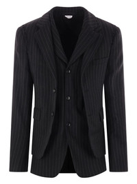striped blazer Highlights - Black - Wool blend - Front button fastening - Vertical stripe pattern - Long sleeves - Two side flap pockets Imported Composition Outer: Wool 98%, Polyurethane 2% Lining: Cupro 100%