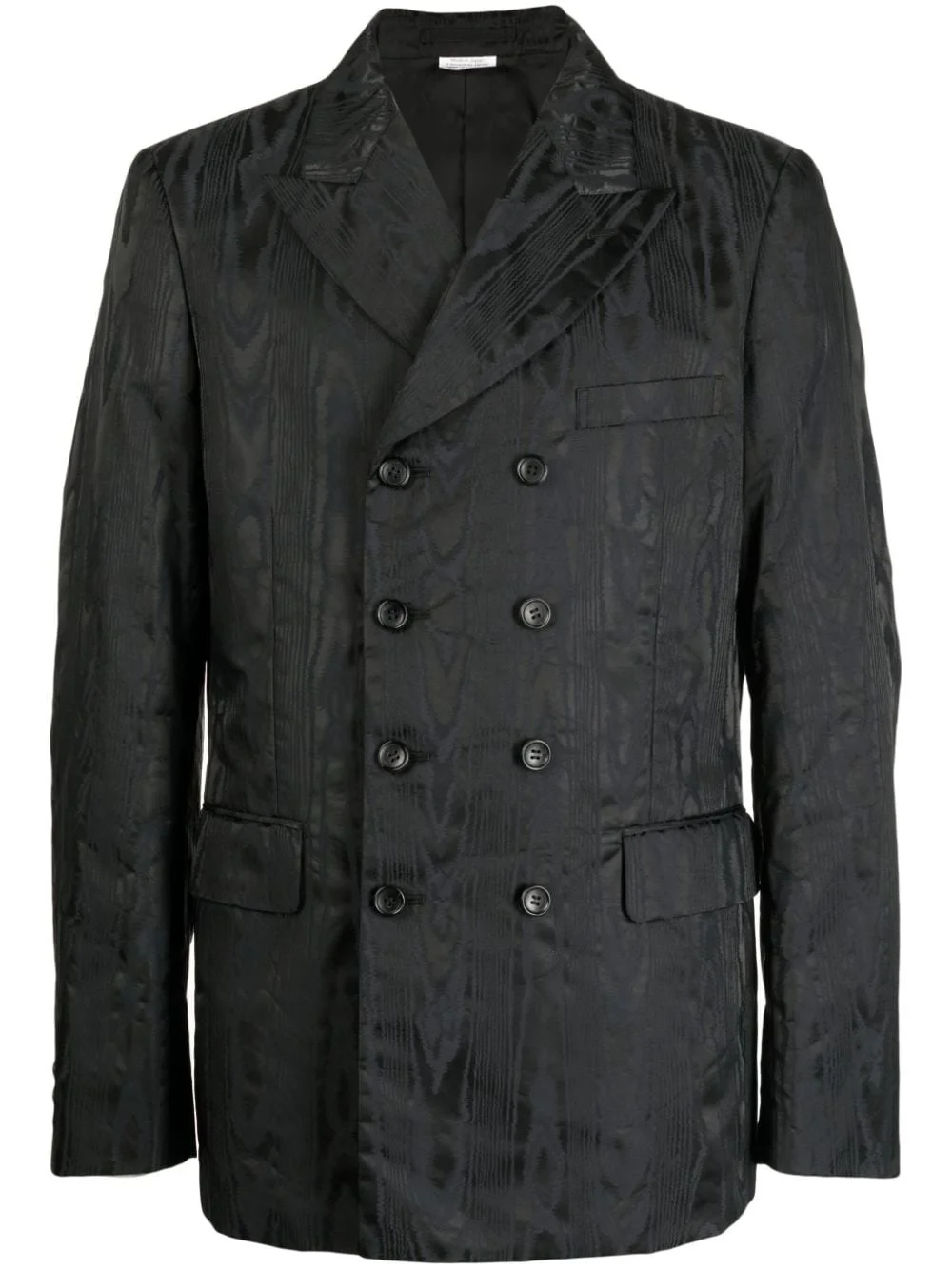 textured-finish peak-lapels blazer Highlights - Black - Textured finish - Peak lapels - Double-breasted button fastening - Chest welt pocket - Two front flap pockets - Long sleeves - Buttoned-cuff sleeves - Straight hem Imported Composition Nylon 100% Lining: Cupro 100% SIZE & FIT Model measurements Height 5 ft 10 in(1.78 m) Bust/Chest 33.85 in(86 cm) Hips 33.85 in(86 cm) Waist 24.01 in(61 cm) FittingInformation Designed to be unstructured, offering a loose fit throughout The vented hem offers movement at the rear Made from a midweight non-stretch fabric This piece fits true to size – take your usual size