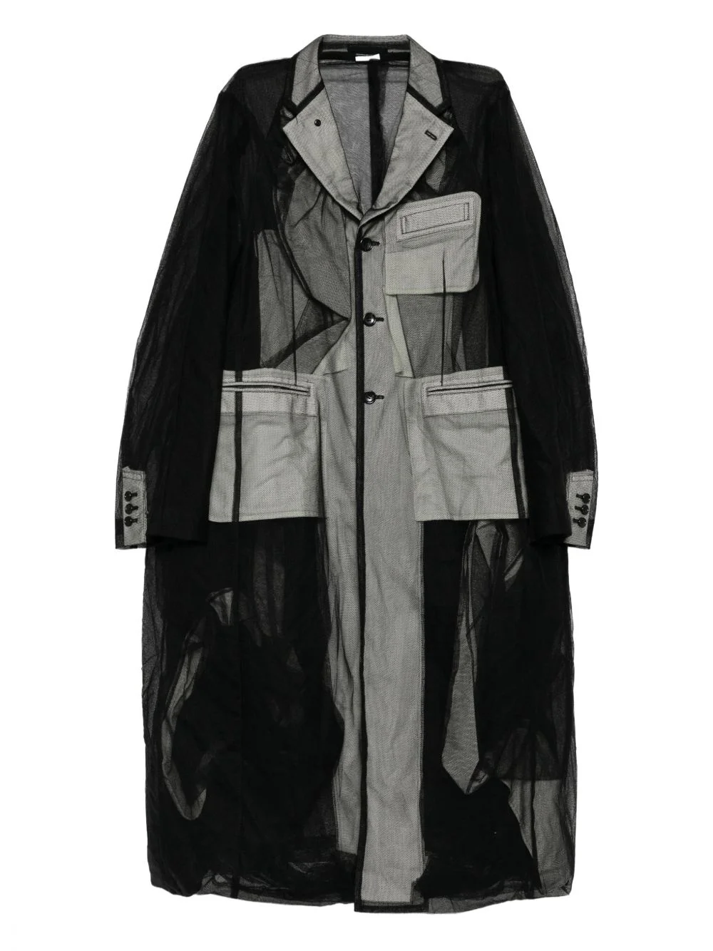 tulle cloth coat Highlights - Black - Front button fastening - Notched lapels - Chest welt pocket - Two front jetted pockets Imported Composition Outer: Nylon 100% Lining: Nylon 100% Washing instructions Dry Clean Only
