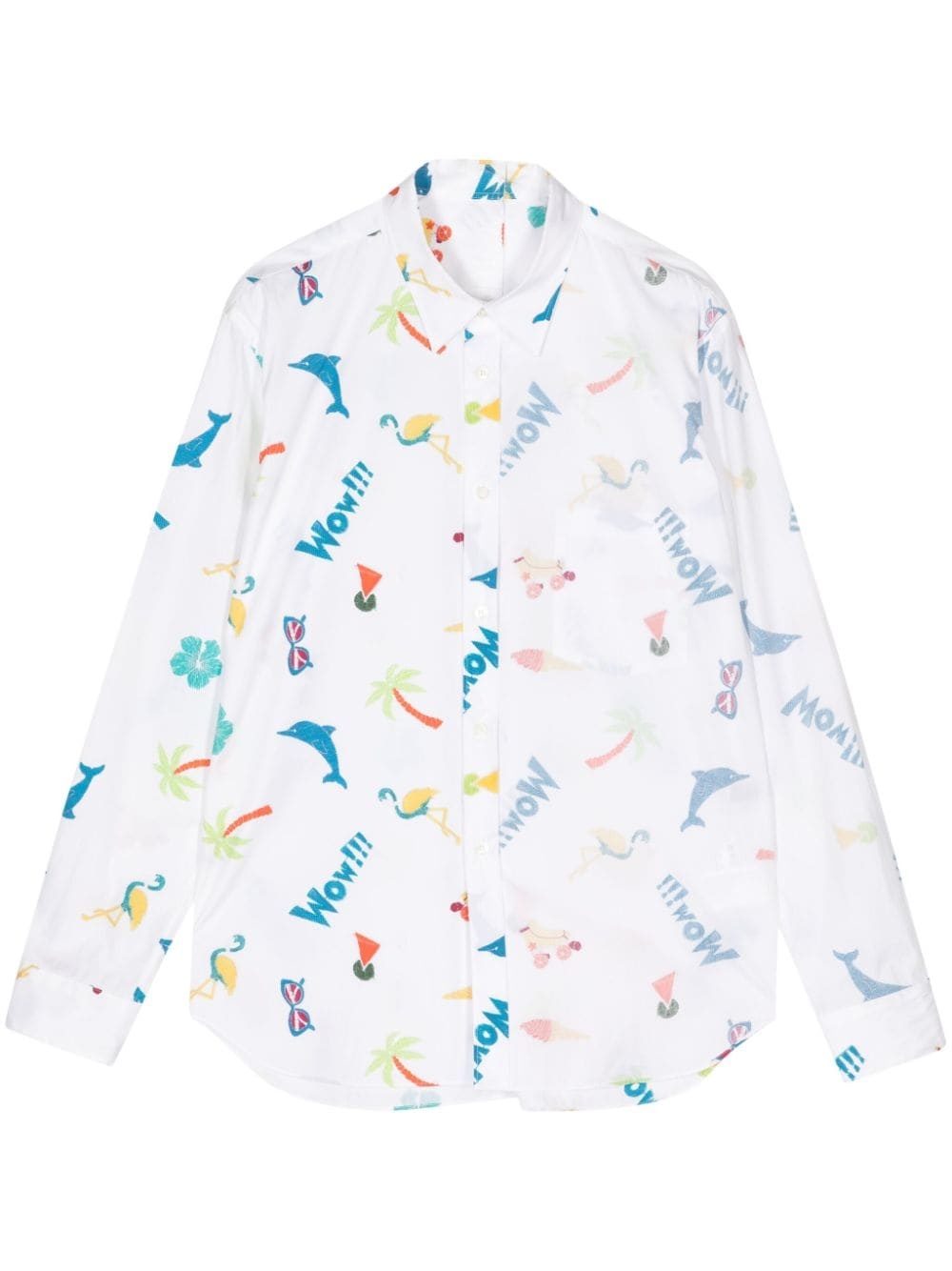 graphic-print cotton shirt Highlights - White/multicolour - Cotton - Poplin texture - All-over graphic print - Straight-point collar - Front button fastening - Drop shoulder - Long sleeves - Buttoned cuffs - Chest patch pocket - Curved hem Imported Composition Cotton 100%