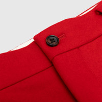 - PP-P037-051-1 - Red - 100% Wool - Front button and zipper closure - Two side welted pockets - Two back pockets, one with a flap and a button closure - Pleated front - FW25 - Made in Japan