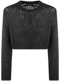 open-knit jumper Highlights - Black - Open knit - Ribbed-knit edge - Brushed effect - Crew neck - Long sleeves - Ribbed cuffs and hem - Cropped Imported Composition Outer: Mohair 67%, Nylon 17%, Wool 16%