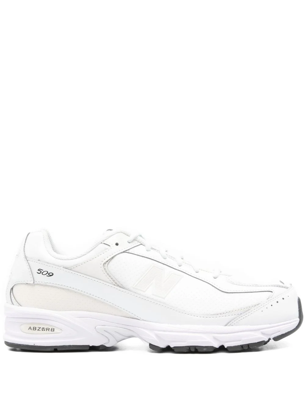 x New Balance U509 sneakers Highlights - White - Logo detail - Lace-up fastening - Round toe - Flat rubber sole Imported Composition Outer: Fabric 100%, Leather 100% Lining: Fabric 100% Sole: Rubber 100%