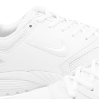 Nike is extending its portfolio of unconventional and unexpected collaborations, this time teaming up with Comme des Garçons Homme Plus. Redefining the techy performance runner - the Nike Air Pegasus 2005 - these kicks are totally stripped back, with an all white palette and simplistic tooling to match, removing detailing that you’d usually find, such as the panelling on the toebox and upper. Instead mesh uppers are overlaid with tonal leather overlays and a scaled down Swoosh is embroidered at the sidewall. OG details? There’s still a few intact with full length Nike Air text at the midsole and Air Pegasus branding at the tongue. - Mesh Upper - Leather Overlay - Mesh Tongue - Rubber Outsole