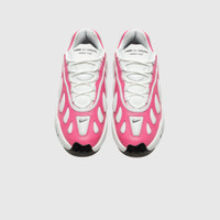 - IF7038 600 - PO-K103-003 - Spirit Pink/White - CDG Homme takes the Nike Air Max 96 and adds IPSA Sense tooling for a new silhouette, the Nike Sense 96. - White leather padded upper - Soft pink leather overlays - White mesh tongue with a leather overlay and printed branding - Soft pink debossed swoosh at the toe - Black embroidered swoosh at the back lateral heel - Debossed CDGH+ branding at the midfoot shank - White textured rubber midsole - Black rubber outsole
