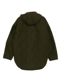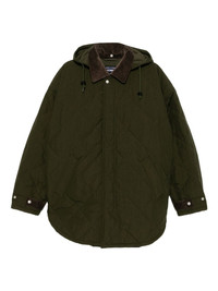 quilted jacket Highlights - Khaki green - Front press-stud and zip fastening - Detachable drawstring hood - Two front welt pockets - Press-stud fastening cuffs Imported Composition Lining: Polyester 100% Polyester 100% Outer: Nylon 100% Washing instructions Dry Clean Only