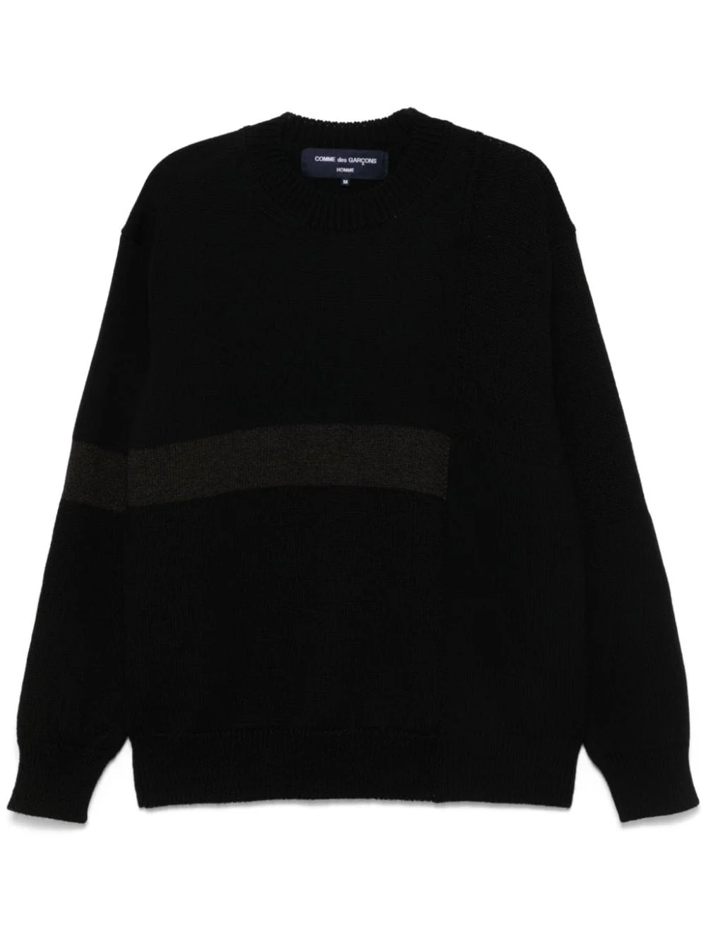 ribbed-knit sweater Highlights - Black - Wool blend - Ribbed knit - Crew neck - Drop shoulder - Long sleeves - Stripe detailing - Straight hem Imported Composition Wool 97%, Polyester 3% SIZE & FIT Model measurements Height 6 ft 1 in(1.85 m) Bust/Chest 35.82 in(91 cm) Hips 37.79 in(96 cm) Waist 29.13 in(74 cm) FittingInformation Designed to be unstructured, offering a loose fit throughout The ribbed hem offers a close, comfortable fit Made with a midweight knit, this piece offers some stretch