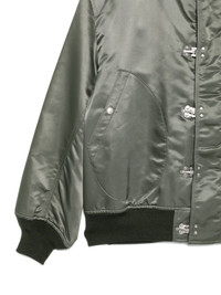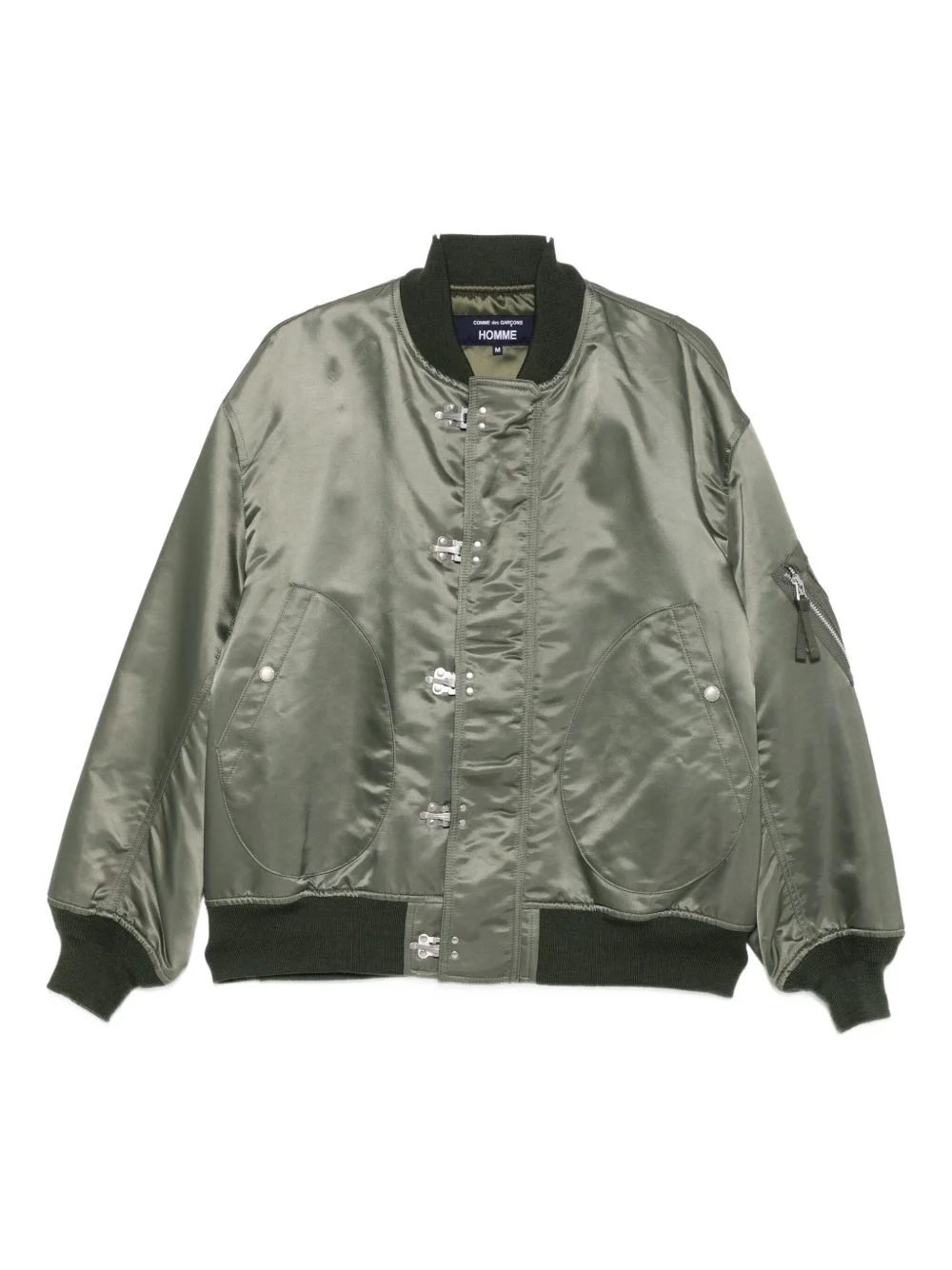 satin-finish bomber jacket Highlights - Khaki - Satin finish - Multiple buckles - Welt pockets - Ribbed hem - Two front pockets Imported Composition Fabric 100% Washing instructions Read Manufacturer Guidelines