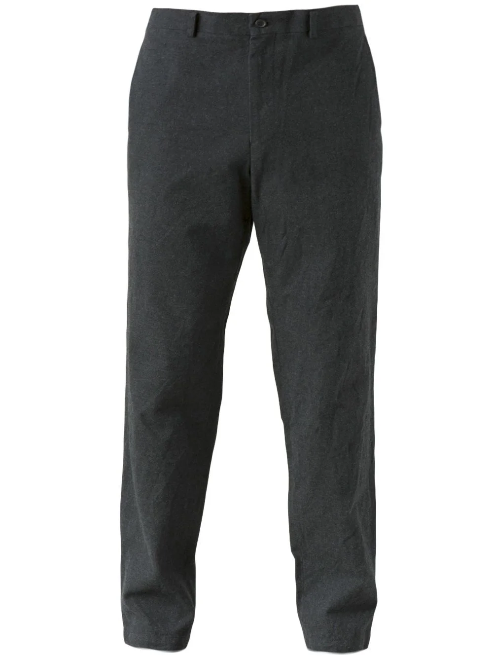 'Serge' wool trousers Charcoal grey wool blend 'Serge' trousers featuring a concealed zip fly fastening, front button closure, and belt loops. Has two front inset pockets, one back welt pocket, and one black flap buttoned pocket. Imported Composition Wool 58%, Cotton 42% Lining: Cupro 100% SIZE & FIT Model measurements Height 6 ft 0 in(1.83 m) Bust/Chest 38.97 in(99 cm) Hips 33.07 in(84 cm) Waist 29.92 in(76 cm) Washing instructions Dry Clean Only