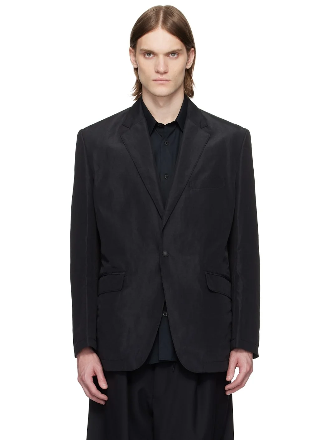 Polyester- and linen-blend canvas blazer. · Notched lapel · Press-stud closure · Welt pocket at chest · Flap pockets · Press-stud vent at cuffs · Zip pockets at interior · Partial ripstop lining Supplier color: Black Body: 50% polyester, 50% linen. Lining: 100% polyester. Made in Japan 251057M195002