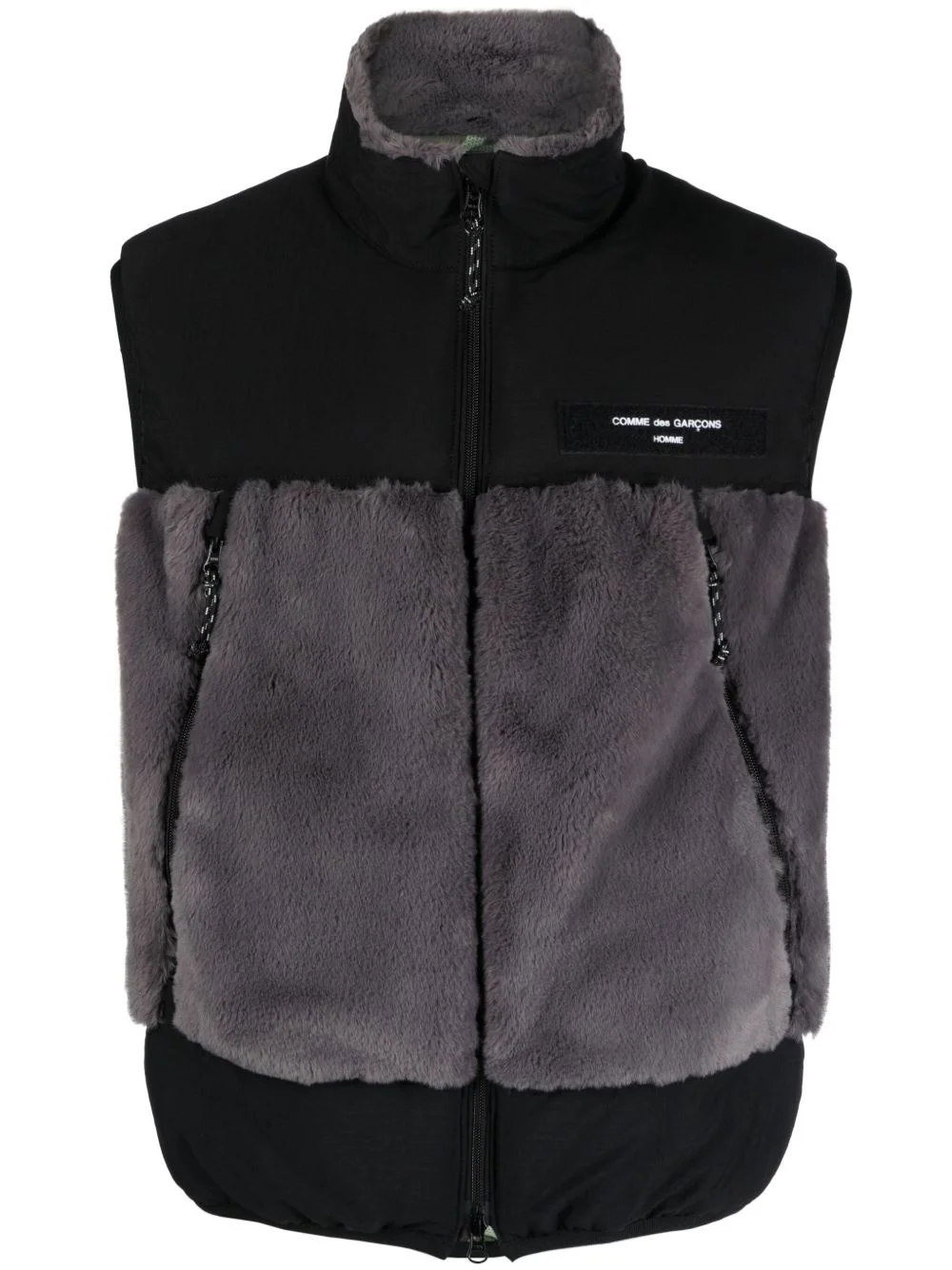 Sherpa logo-patch vest Highlights - Dark grey/black - Faux-fur detailing - Colour-block design - Logo patch at the chest - High neck - Front zip fastening - Two side zip-fastening pockets - Straight hem Imported Composition Outer: Polyester 100%, Nylon 95%, Polyurethane 5% Lining: Polyester 100% SIZE & FIT Model measurements Height 6 ft 2 in(1.88 m) Bust/Chest 35.03 in(89 cm) Hips 35.82 in(91 cm) Waist 27.95 in(71 cm) FittingInformation Designed for a relaxed fit, this piece allows for comfort and movement when worn Made from a midweight non-stretch fabric This piece fits true to size – take your usual size