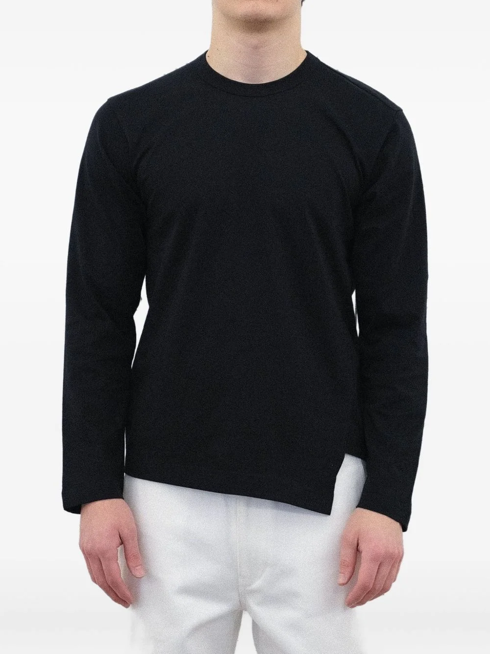 side slit long-sleeve t-shirt Highlights - Black - Round neck - Long sleeves - Straight hem - Tonal stitching Imported Composition Fabric 100% Washing instructions Read Manufacturer Guidelines