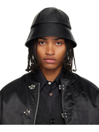 Grained faux-leather bucket hat. · Embroidered eyelets at crown · Quilted brim · Poplin lining Supplier color: Black Synthetic. Made in Japan 252057M140000