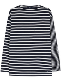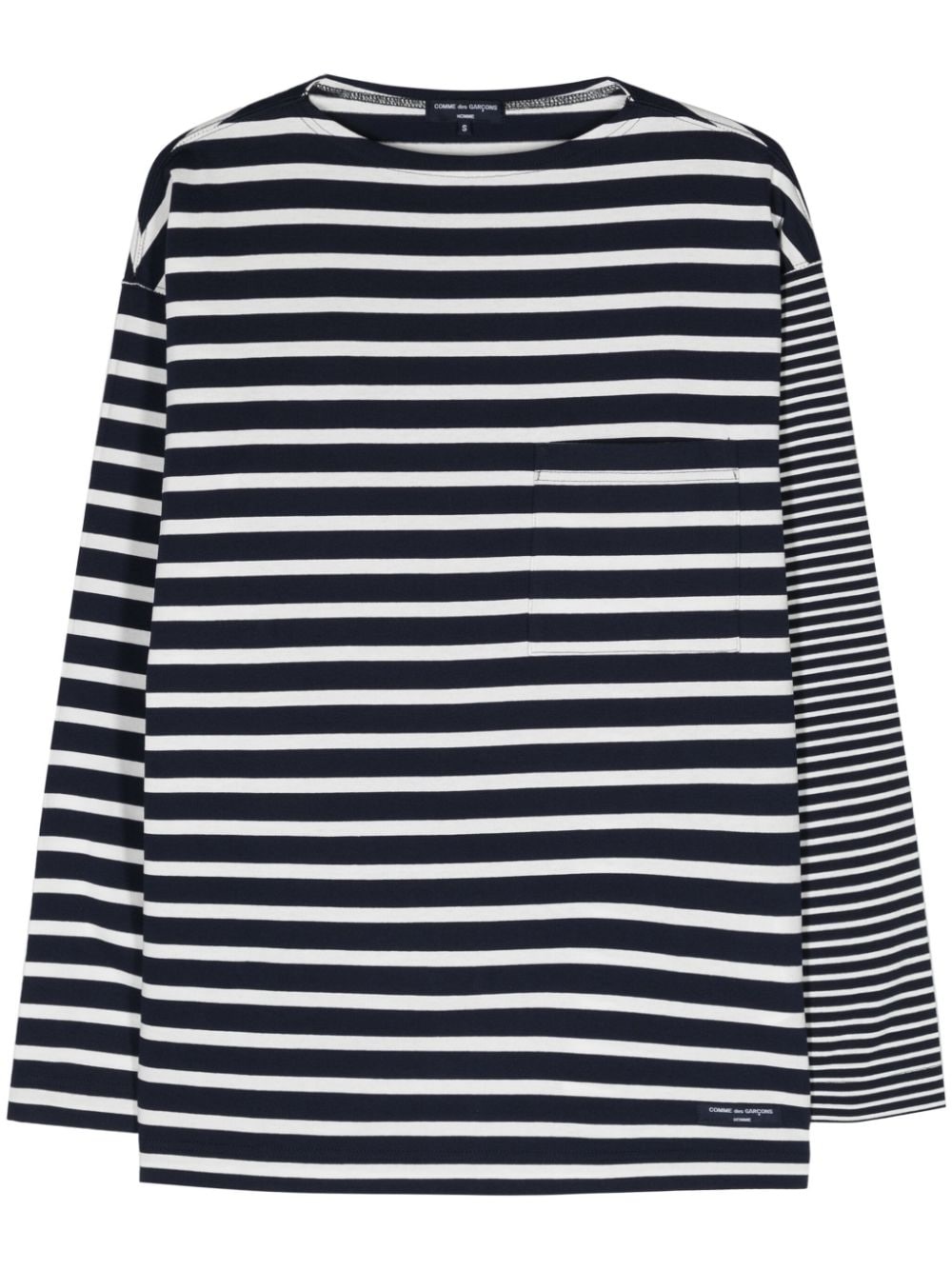 striped cotton T-shirt Highlights - Navy blue/white - Cotton - Jersey texture - Horizontal stripe pattern - Round neck - Long sleeves - Chest patch pocket - Straight hem Imported Composition Cotton 100%