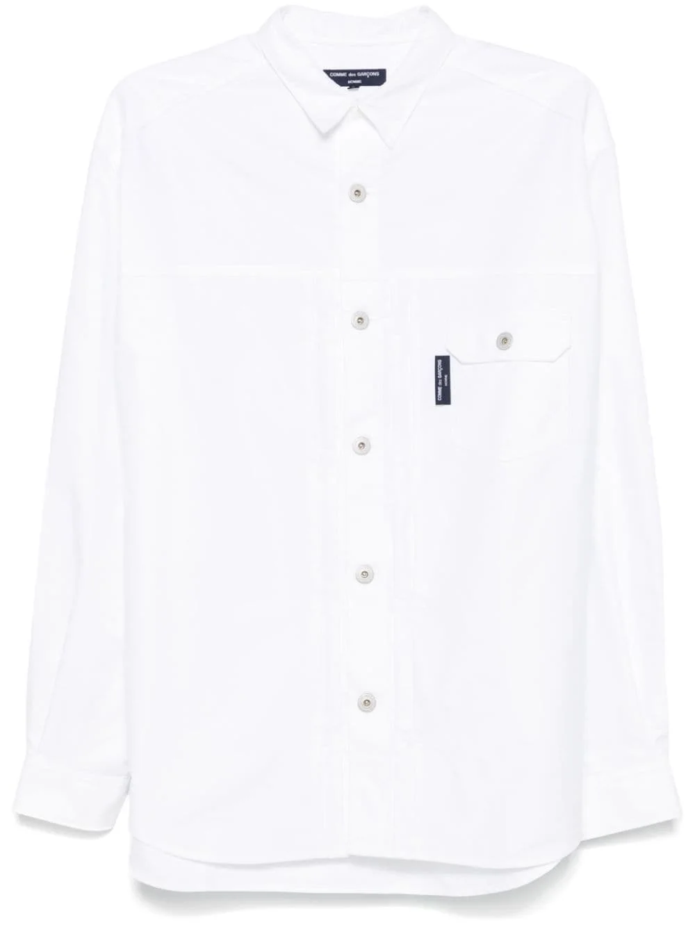 pintuck-detail shirt Highlights - White - Cotton - Interlock twill weave - Pintuck detailing - Front button fastening - Classic collar - Drop shoulder - Long sleeves - Buttoned cuffs - Button-fastening chest pocket - Logo tag - Pleat detailing to the rear - Curved hem Imported Composition Cotton 100%