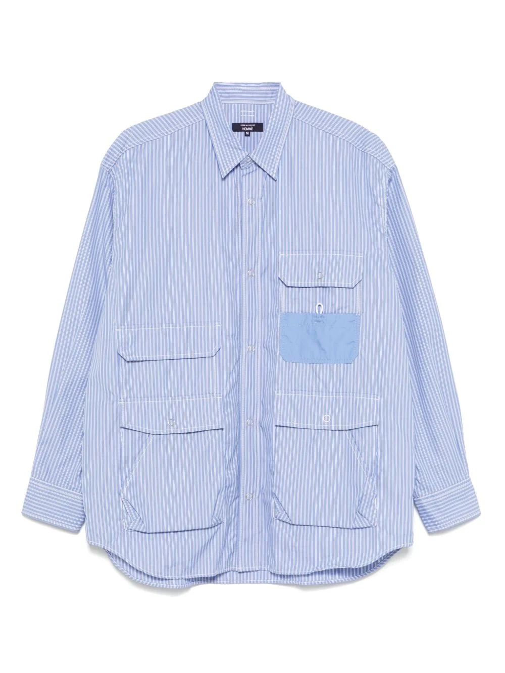 striped shirts Highlights - Cerulean blue - Front press-stud fastening - Press-stud fastening cuffs - Multiple cargo pockets - Long sleeves Imported Composition Cotton 100% SIZE & FIT Model measurements Height 6 ft 2 in(1.87 m) Bust/Chest 38.97 in(99 cm) Hips 37.99 in(96.5 cm) Waist 29.52 in(75 cm) FittingInformation Designed to be unstructured, offering a loose fit throughout Made from a midweight non-stretch fabric