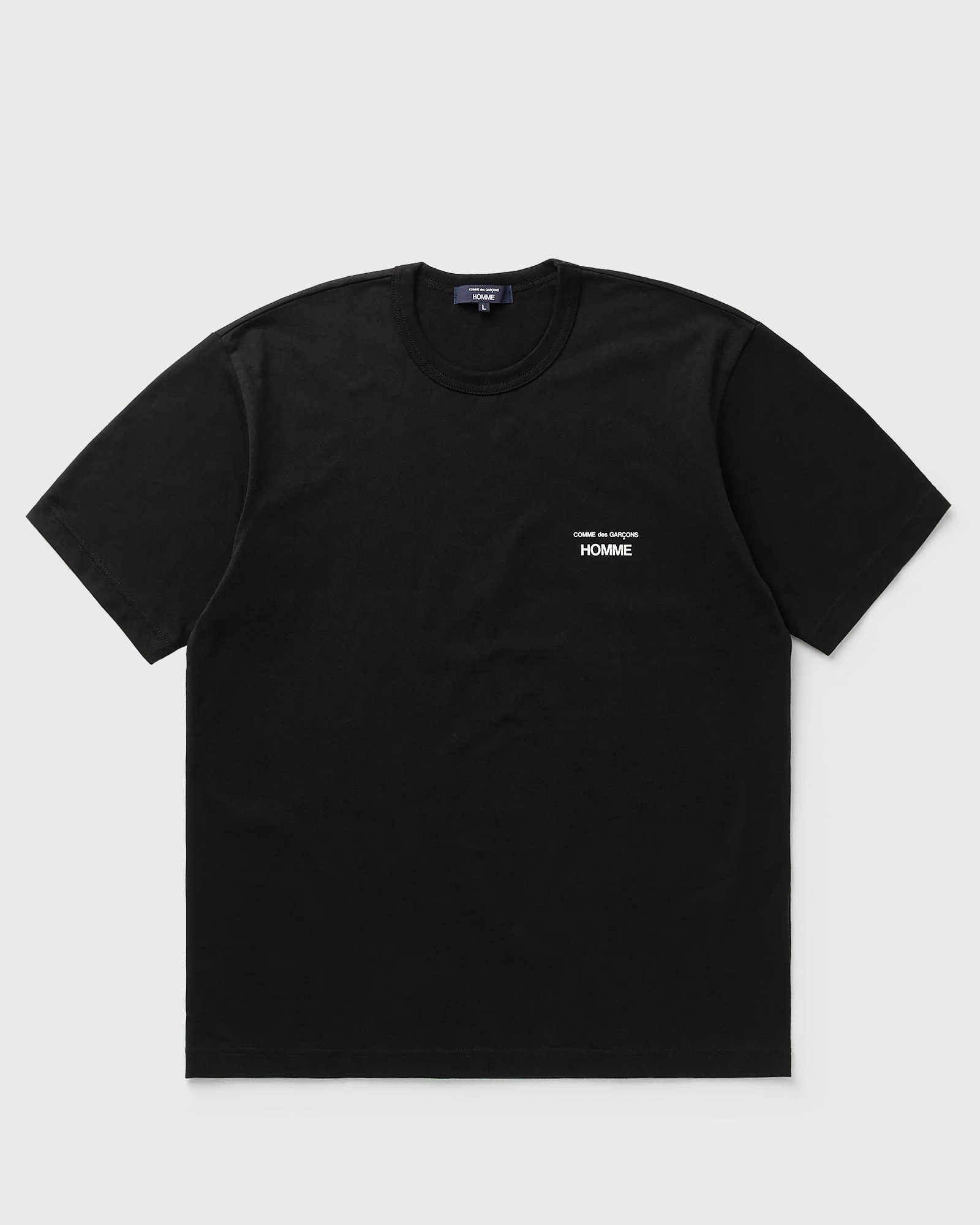 The Comme des Garcons Homme Plus T-shirt is a minimalist piece that stands out thanks to its subtle branding. Made from high-quality cotton jersey, it offers both comfort and style. - Ribbed crew neck - Short sleeves - Logo print Article number: HP-T101-W25-1 Gender: men Color: BLACK Material: 100% Cotton