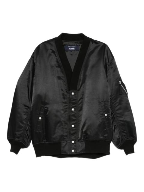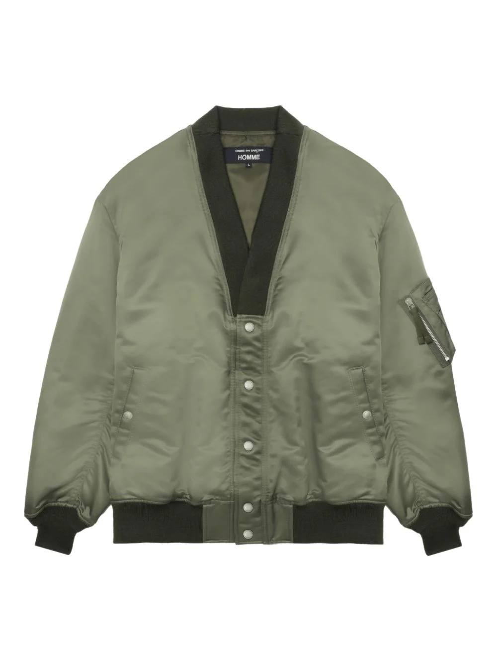 V-neck bomber jacket Highlights - Khaki - Satin finish - V-neck - Ribbed cuffs - Welt pockets - Zip pocket Imported Composition Nylon 65%, Cotton 35%