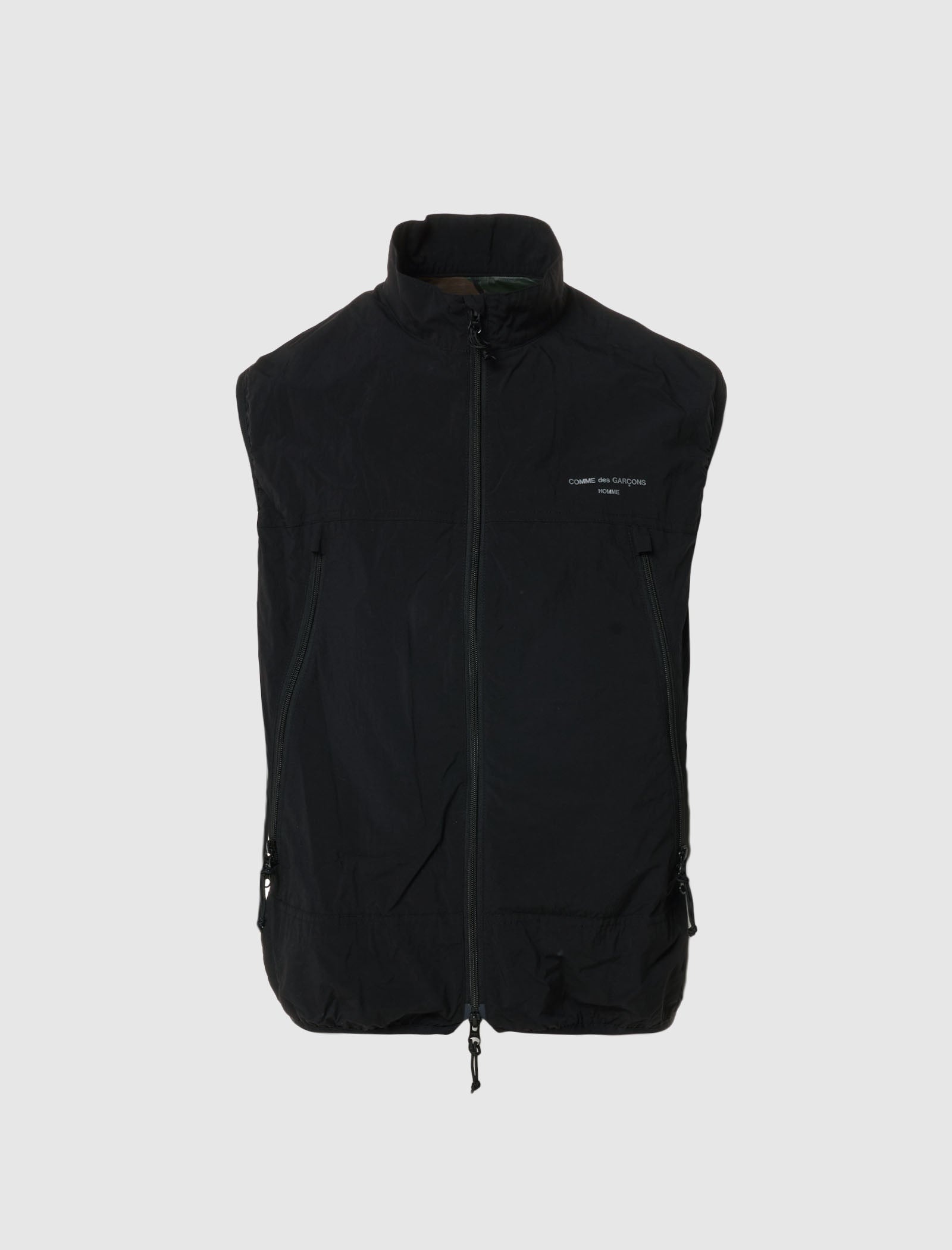Relaxed-fit nylon vest. Stand collar. D-ring at back collar. Graphic logo text at chest. Two zip pockets at sides. Elasticized hem. Two-way zip closure at center front. - 100% Nylon SKU: HM-V001-051