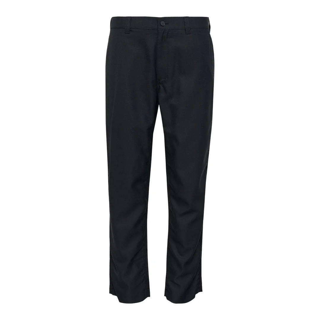 600071730BLK00S / HP-P101/051/1/1A - Premium wool gabardine construction - Front button and zip closure - Side seam pockets - Straight leg silhouette - Unfinished hem - Regular fit through waist and hip COMME des GARCONS HOMME Wool Gabardine Pants deliver avant-garde tailoring with sophisticated construction and contemporary minimalism. Crafted from premium wool gabardine in deep navy, featuring the brand's signature clean lines and architectural silhouette. The structured fabric and refined finishing create a versatile foundation piece for modern menswear.