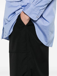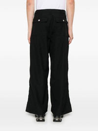 wool trousers Highlights - Black - Front button and zip fastening - Two side slit pockets - Two rear flap pockets - Straight leg Imported Composition Outer: Wool 100% Lining: Cupro 100% SIZE & FIT Model measurements Height 6 ft 2 in(1.87 m) Bust/Chest 38.97 in(99 cm) Hips 37.99 in(96.5 cm) Waist 29.52 in(75 cm) FittingInformation Designed with a wide leg, offering a loose and roomy fit Made from a midweight non-stretch fabric Washing instructions Dry Clean Only