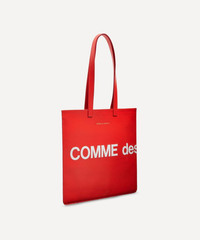 Editor's Notes A timeless addition to your everyday edit, this leather tote bag by Comme des Garçons presents a bold, wrap-around logo design. Crafted from sleek leather, this roomy design offers a sleek and effortlessly stylish way to carry your essentials, complete with gold-tone hardware and foil branding. Features Leather tote bag Contrast logo design Open top One main compartment Internal pocket Two top handles Gold-tone hardware and embossed logo Made in Spain COMPOSITION & SIZE Leather Lining: Cotton H: 33cm, W: 36cm About Comme des Garçons COMMES des GARÇONS - French for “like boys” - is an internationally renowned label founded in 1969 by Japanese designer Rei Kawakubo. The iconic red-heart-with-eyes logo of its PLAY line is instantly recognised across the globe. In 2017 New York’s Metropolitan Museum of Art made the theme of its annual Costume Institute exhibition Rei Kawakubo/Comme des Garçons: Art of the In-Between, demonstrating the breadth of the designer’s influence. Today the brand’s colour-saturated, avant-garde designs are beloved by fashion devotees around the world.