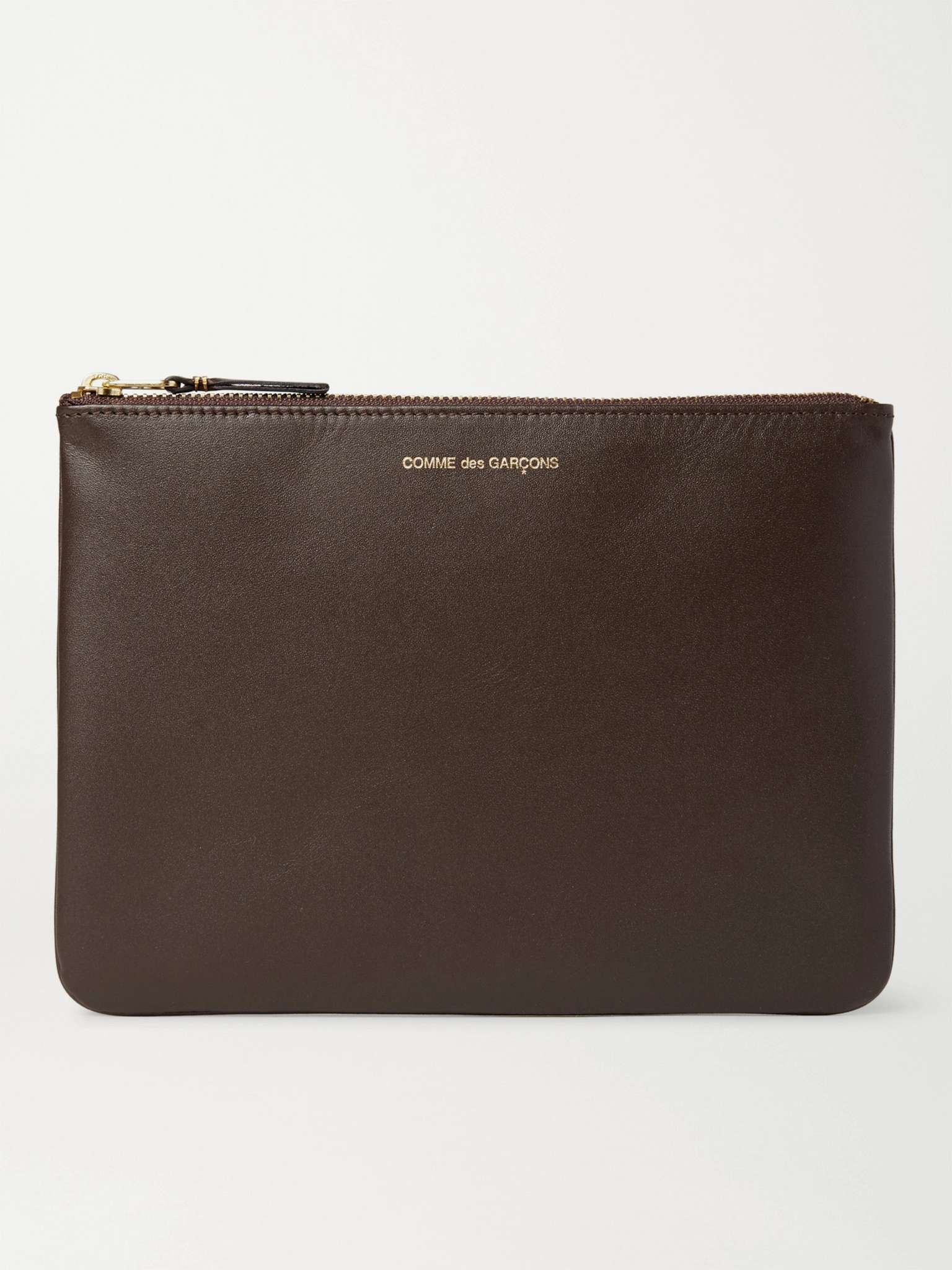 Comme des Garçons' supple leather pouch is a sophisticated option for the gent on the go. Sleek and streamlined in a deep chocolate hue, it's sized to hold your cell phone, sunglasses and a cardholder. Size & Fit - Height: 16cm / 6.3in - Width: 21cm / 8.3in Details & Care - Chocolate leather (cow) - Gold designer stamp - Zip fastening - Comes in box - Spain - Made in Spain