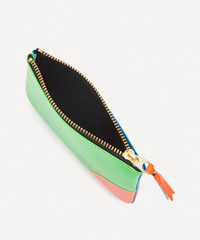 Editor's Notes The Super Fluo wallet by Comme des Garçons is crafted from contrasting panels of vivid fluorescent leather. Blending bold colourblock with optimal precision, this wallet offers a compact and effortlessly stylish way to carry your day-to-day essentials. Complete with a gold-tone zip fastening and internal foil branding, this maximalist design will make a vibrant addition to your accessories edit. Features Super Fluo wallet Smooth leather Zip closure One main compartment Gold-tone hardware and foil branding Made in Spain COMPOSITION & SIZE 100% Leather H: 9.5cm, W: 13.5cm, D: 1cm About Comme des Garçons COMMES des GARÇONS - French for “like boys” - is an internationally renowned label founded in 1969 by Japanese designer Rei Kawakubo. The iconic red-heart-with-eyes logo of its PLAY line is instantly recognised across the globe. In 2017 New York’s Metropolitan Museum of Art made the theme of its annual Costume Institute exhibition Rei Kawakubo/Comme des Garçons: Art of the In-Between, demonstrating the breadth of the designer’s influence. Today the brand’s colour-saturated, avant-garde designs are beloved by fashion devotees around the world.