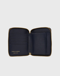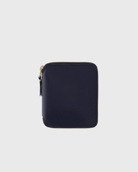 This classic wallet from Comme des Garçons is made in Spain from high-quality cowhide and features a gold-colored zipper and gold foil logo. - Zip closure Four card slots - Coin pocket - Compartment for banknotes - Dimensions: 12.5cm x 10.5cm Article Number: SA2100-NAVY Gender: Men, Women Color: NAVY Material: 100% Leather