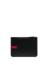 logo-print leather wallet Highlights - Black/fuchsia pink - Leather - Debossed logo to the front - All-over logo print - Top zip fastening - Main compartment - Rectangle shape Imported Composition Leather 100% SIZE & FIT Measurement DEPTH 0.39 in(1 cm) LENGTH 6.29 in(16 cm) WIDTH 8.46 in(21.5 cm)