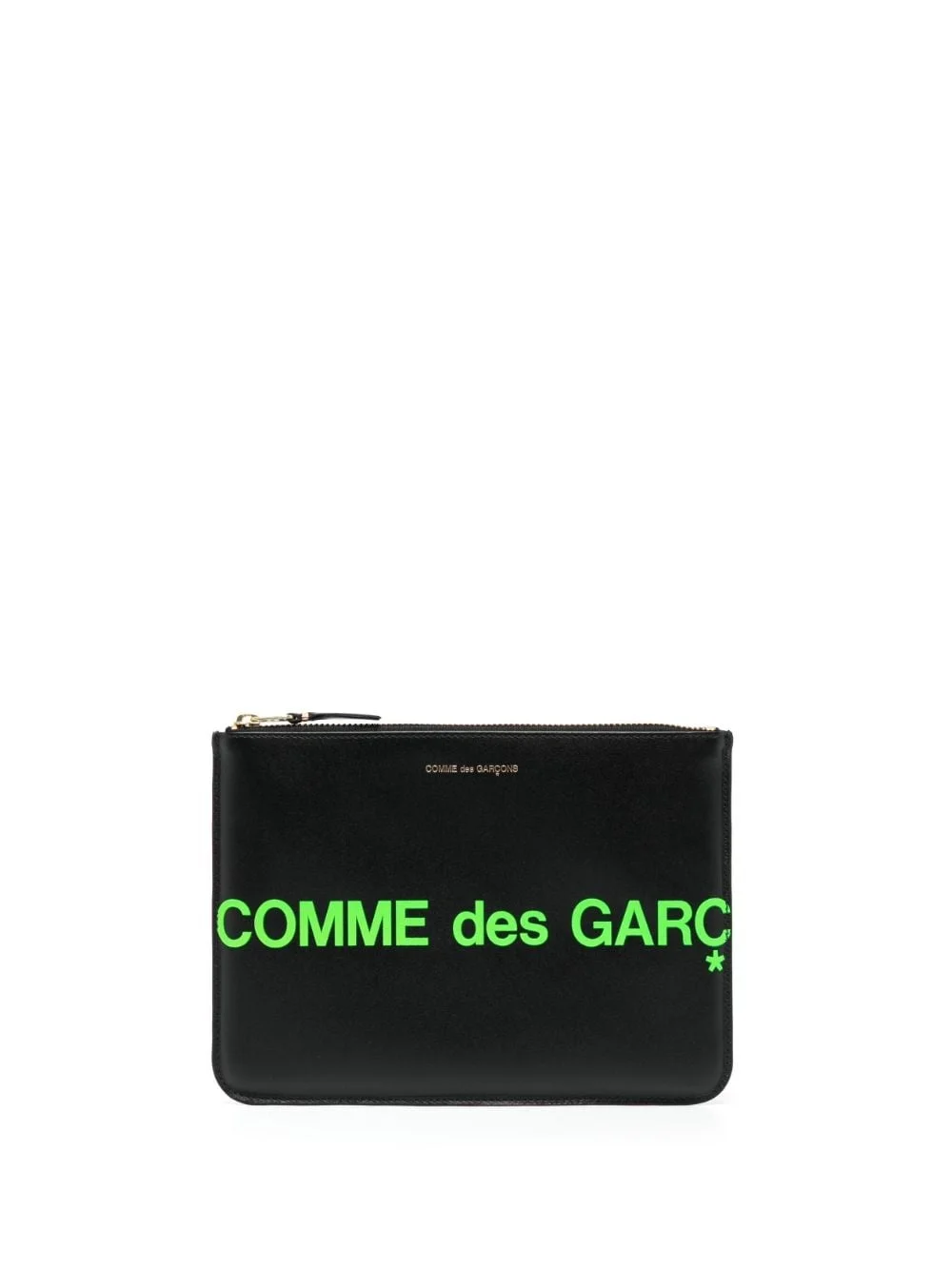 logo-print leather wallet Highlights - Black/neon green - Leather - Debossed logo to the front - Logo print to the front - Top zip fastening - Main compartment - Rectangle shape Made in France Composition Leather 100% SIZE & FIT Measurement DEPTH 0.39 in(1 cm) LENGTH 6.29 in(16 cm) WIDTH 8.66 in(22 cm)