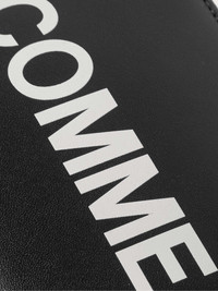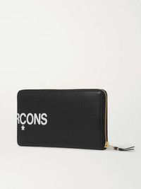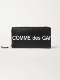 Comme des Garçons' wallet is printed with an oversized wrap-around white logo. It's made from black leather and large enough to hold all of your cards - credit, business and identity - as well as bills, coins and receipts. Size & Fit - Height: 20cm / 7.9in - Width: 10cm / 3.9in Details & Care - Black and white leather (Cow) - Six internal card slots, three bill sleeves, coin pocket, gold stamped emblem - Zip fastening - Comes with dust bag and presentation box - Made in Spain