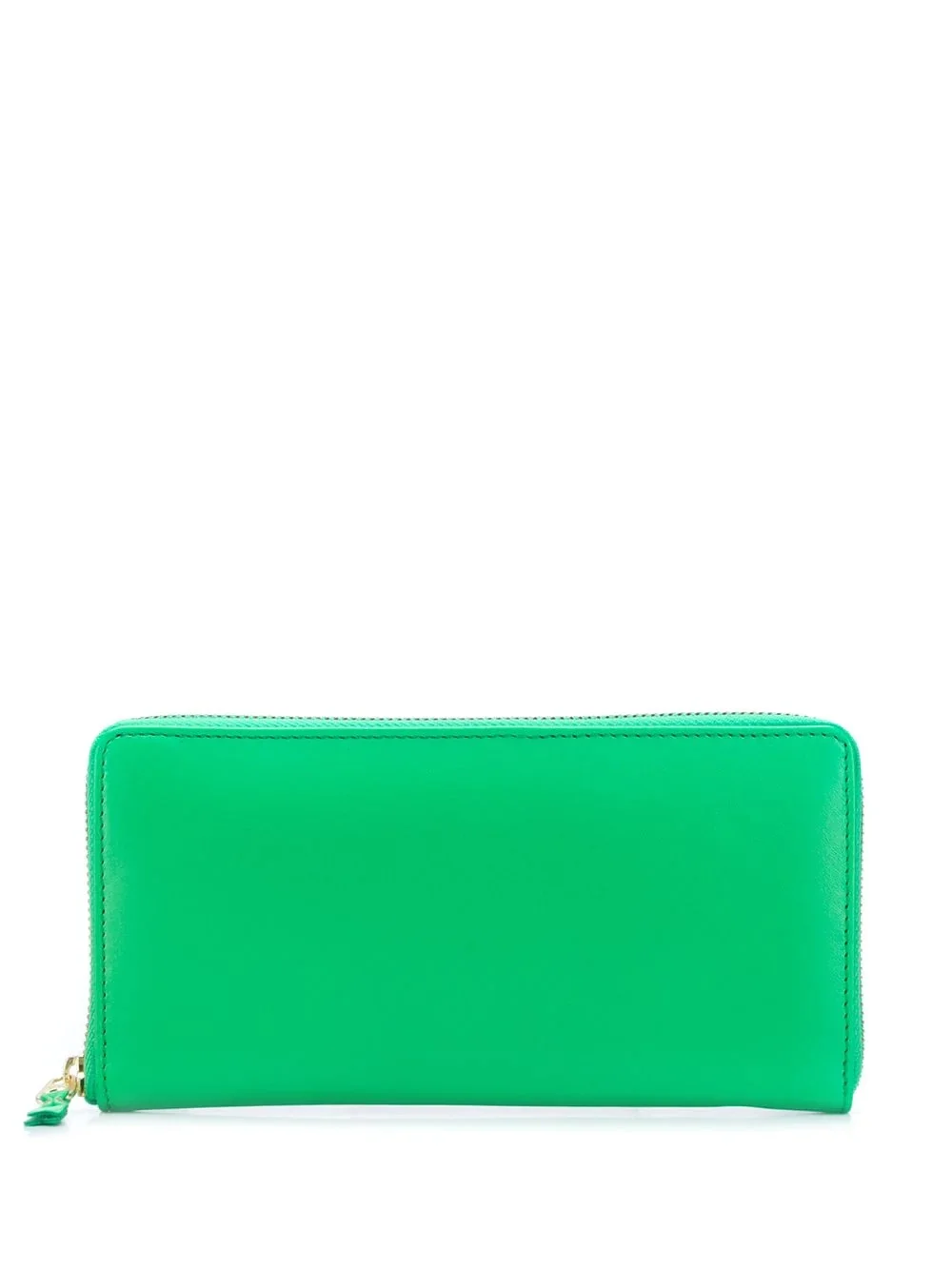 all around zip wallet Green leather all around zip wallet from Comme Des Garcons Wallet featuring multiple interior card slots, a smooth surface with a matte finish and an internal zipped pocket. Imported Composition Outer: Calf Leather 100% SIZE & FIT Measurement DEPTH 0.78 in(2 cm) LENGTH 7.48 in(19 cm) WIDTH 4.72 in(12 cm)