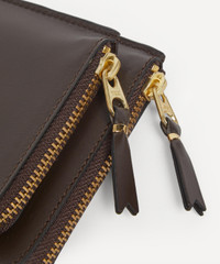 DETAILS Outside Pocket wallet Cowhide leather Slim design Zip around closure Exterior pocket Made in Spain COMPOSITION & SIZE 100% Leather H: 9.5cm, W: 11cm