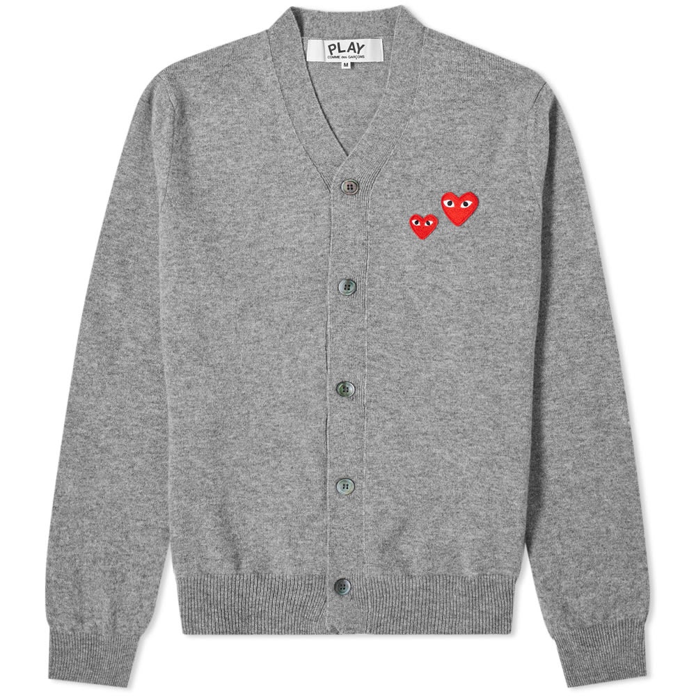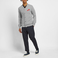 Reimagining a classic knit with a touch of Comme des Garçons PLAY’s lively aesthetic, the Japanese label accents this lightweight cardigan with its iconic double-heart appliqué. In vibrant red, the motif stands out against the soft grey wool – elevating this sleek staple with signature doe-eyed charm. - 100% Wool - Button Closure - Appliqué Branding - Ribbed Trims - Made in Japan
