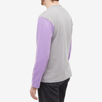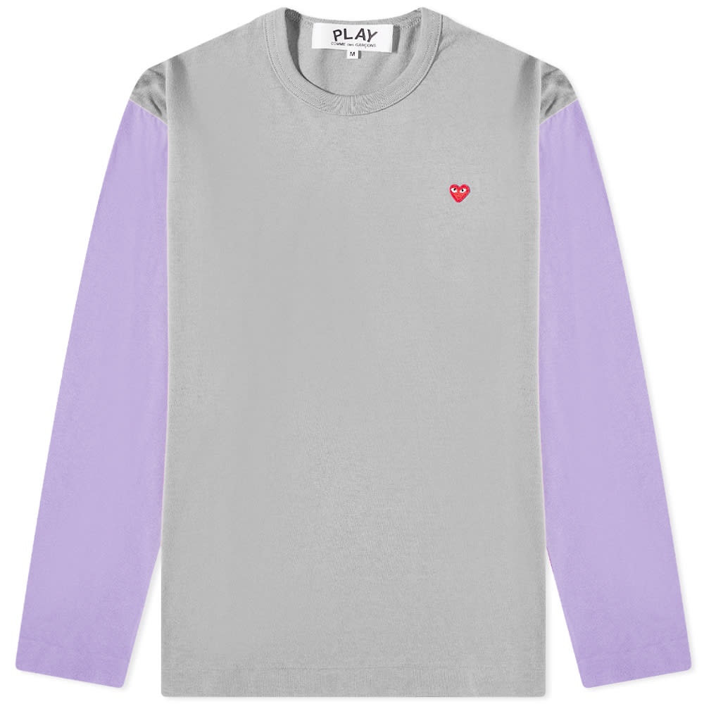 Comme des Garçons PLAY vibrant and playful style shines through with this long-sleeve grey t-shirt. Cut from premium cotton, it boasts a bright colour block design with contrasting purple sleeves and gets finished with the label’s signature bug-eyed red heart stitched at the chest. - 100% Cotton - Ribbed Crewneck - Appliqué Branding - Made in Japan