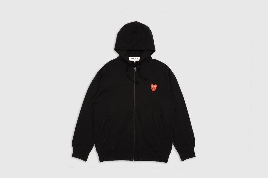 - AZ-T294-051-1BLK - Black/Red - 100% Polyester - Made in Japan - Drawstring hoody - Full zip - Embroidered red double hearts - Side pockets - Elastic cuffs and hem