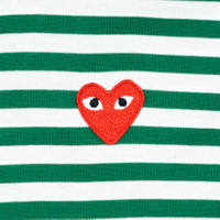 - AZT1640513GRN - Green/White - 100% Cotton - Made in Japan - Crewneck Collar - Long-Sleeved Striped T-Shirt - Heart Applique - Please note that this garment runs small. We suggest sizing up one size for a more true fit