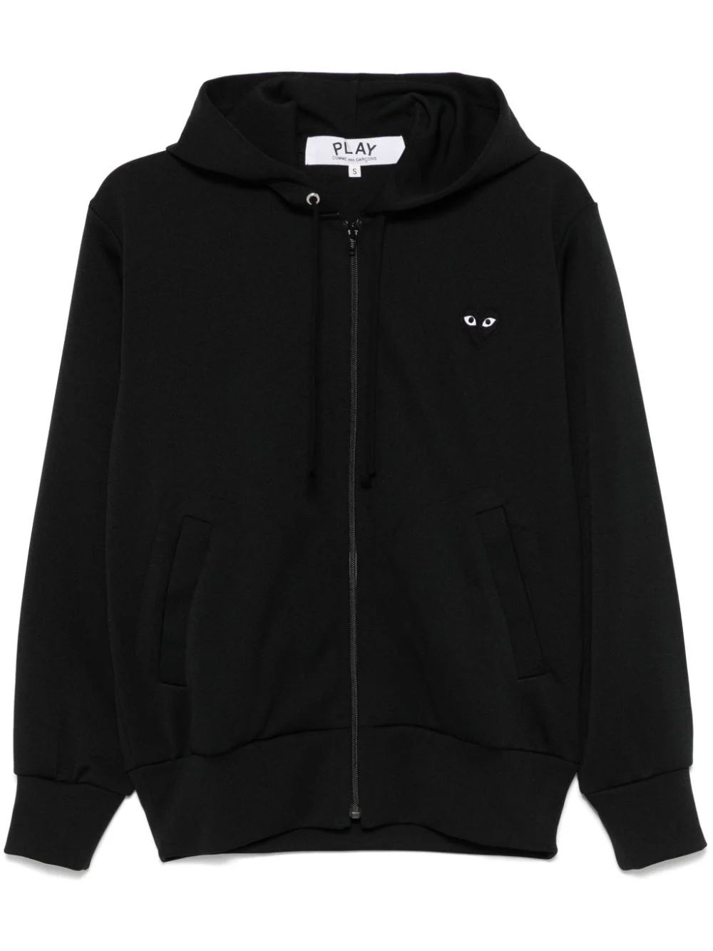heart-patch zip-up hoodie Highlights - Black - Technical jersey - Front zip fastening - Drawstring hood - Drop shoulder - Long sleeves - Signature heart patch - Two side welt pockets - Signature heart print - Ribbed hem - When buying this unisex item, keep in mind that it is graded in standard men's sizing. Made in United Kingdom Composition Polyester 100% SIZE & FIT Model measurements Height 5 ft 11 in(1.8 m) Bust/Chest 32.67 in(83 cm) Hips 36.22 in(92 cm) Waist 24.4 in(62 cm) FittingInformation This piece is unisex – if you usually select men's sizing expect a loose fit throughout; if you usually select women's sizes, expect an oversized fit The ribbed hem offers a close, comfortable fit Made from a midweight non-stretch fabric, this piece offers minimal elasticity when worn Measurement CHEST 40.94 in(104 cm) SLEEVE LENGTH 23.62 in(60 cm) LENGTH 24.4 in(62 cm) Shoulder Width 18.5 in(47 cm)
