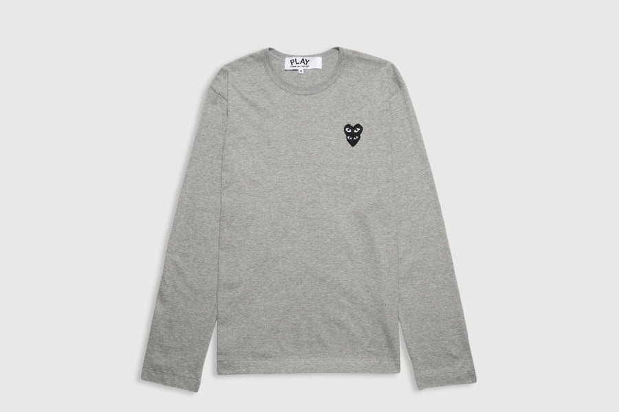 - AZ-T300-051-1GRY - Grey/Black - 100% Cotton - Made in Japan - Ribbed crewneck collar - Embroidered black double hearts