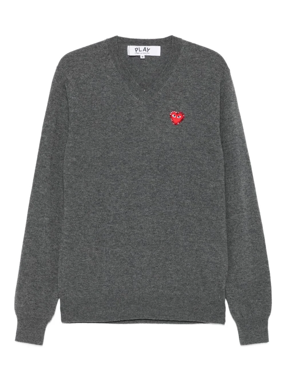 heart-emblem v-neck sweater Highlights - Medium gray - V-neck - Rhinestone embellishment - Long sleeves - Ribbed cuffs Imported Composition Wool 100% SIZE & FIT Model measurements Height 5 ft 11 in(1.8 m) Bust/Chest 31.49 in(80 cm) Hips 36.61 in(93 cm) Waist 24.4 in(62 cm) Washing instructions Read Manufacturer Guidelines